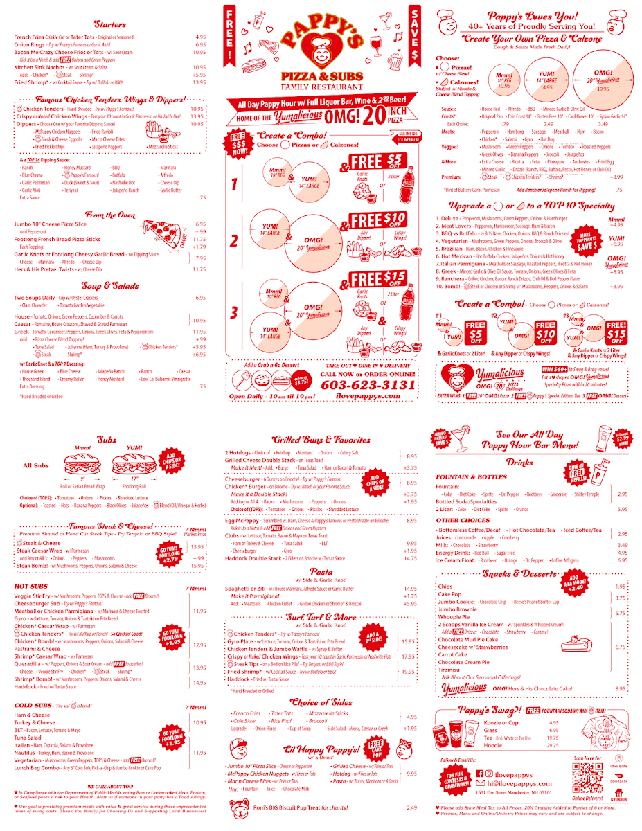 Welcome to Pappy's Pizza & Subs, where flavorful comfort food meets inviting ambiance! Nestled in Manchester, NH, this charming eatery offers a plethora of combos, ensuring every meal is a delightful experience. Choose from their top-notch specialty pizzas like the Mmm! Deluxe, loaded with pepperoni, mushrooms, and more, or enjoy a sumptuous calzone stuffed with ricotta.